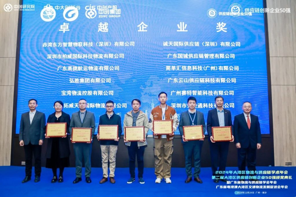 2024.1212月29日,由中創(chuàng)產(chǎn)業(yè)研究院主辦,廣東省科技金融促進(jìn)會(huì)、廣東省物流與供應(yīng)鏈學(xué)會(huì)、廣東省城際運(yùn)輸服務(wù)協(xié)會(huì)聯(lián)合主辦,中大創(chuàng)新谷承辦的“第二屆大灣區(qū)供應(yīng)鏈創(chuàng)新企業(yè)50強(qiáng)”頒獎(jiǎng)典禮在廣州盛大舉行。寶灣受邀參會(huì),榮膺“大灣區(qū)供應(yīng)鏈創(chuàng)新企業(yè)50強(qiáng)——卓越企業(yè)獎(jiǎng)、流通型供應(yīng)鏈創(chuàng)新引領(lǐng)企業(yè)獎(jiǎng)”。