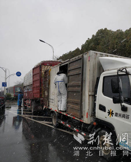 2020.02荊楚網(wǎng)客戶端-荊楚網(wǎng)消息(記者陳泉 通訊員張敏、李莉)2月15日上午,一輛載有援漢蔬菜的貨車在前往武漢亞心總醫(yī)院的路上發(fā)生故障拋錨。緊急時刻,武漢開發(fā)區(qū)寶灣物流中心派車前往過駁轉(zhuǎn)運(yùn),經(jīng)過近5個小時的努力,這批來自湖南張家界高峰土家族鄉(xiāng)的10噸應(yīng)急蔬菜成功轉(zhuǎn)運(yùn)至武漢市亞心總醫(yī)院、武漢市精神衛(wèi)生中心等單位。